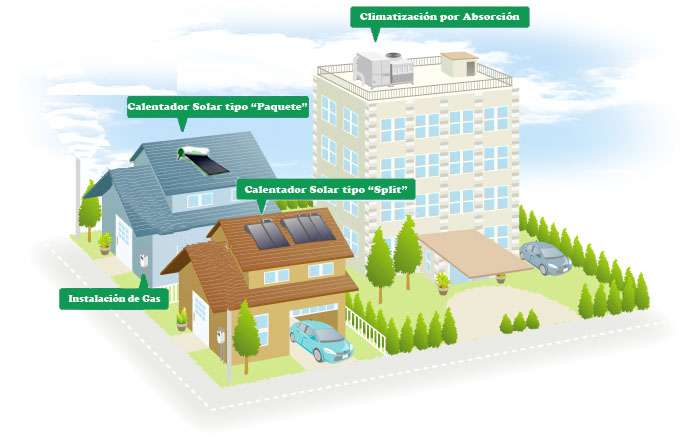 • Sistema de climatización por absorción o adsorción usando gas natural.